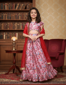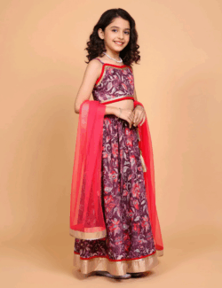 GIRLS PREMIUM ETHNIC WEAR-NIVDU MAROON with Floral Print-4