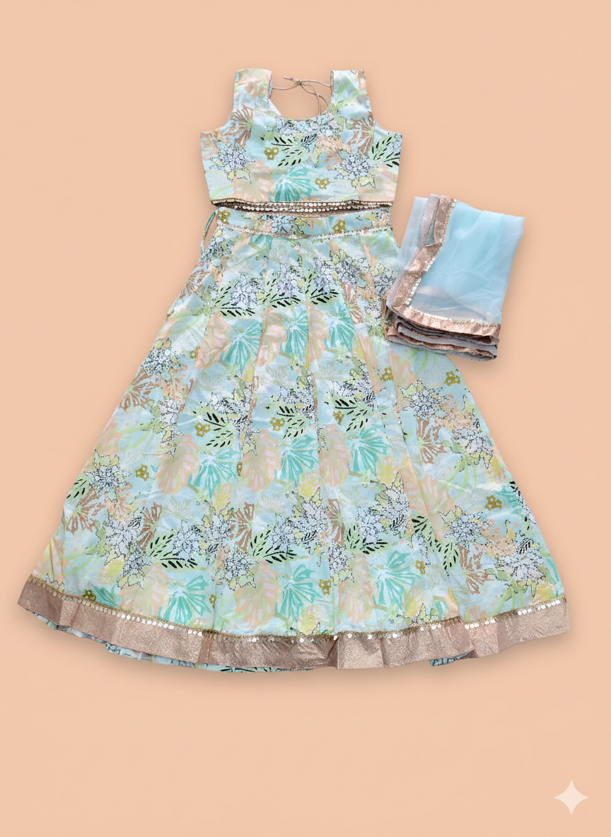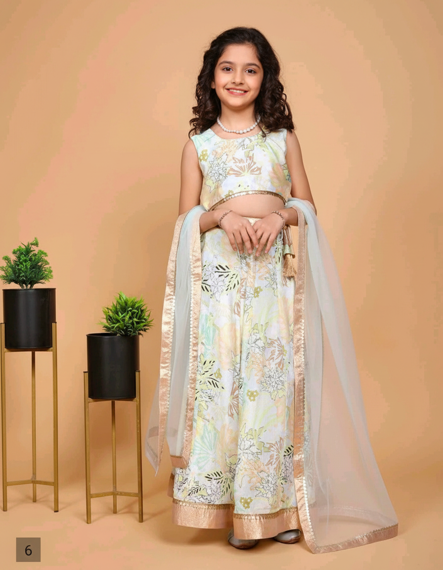 GIRLS PREMIUM ETHNIC WEAR-NIVDU PISTAL GREEN with Floral Print-1